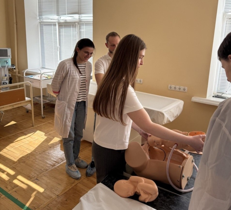Для студентів 4 курсу заняття у акушерському відділення симуляційного центру - це реальна можливість відпрацювати практичні навички на реалістичних моделях, детально познайомитись із біомеханізмом пологів.